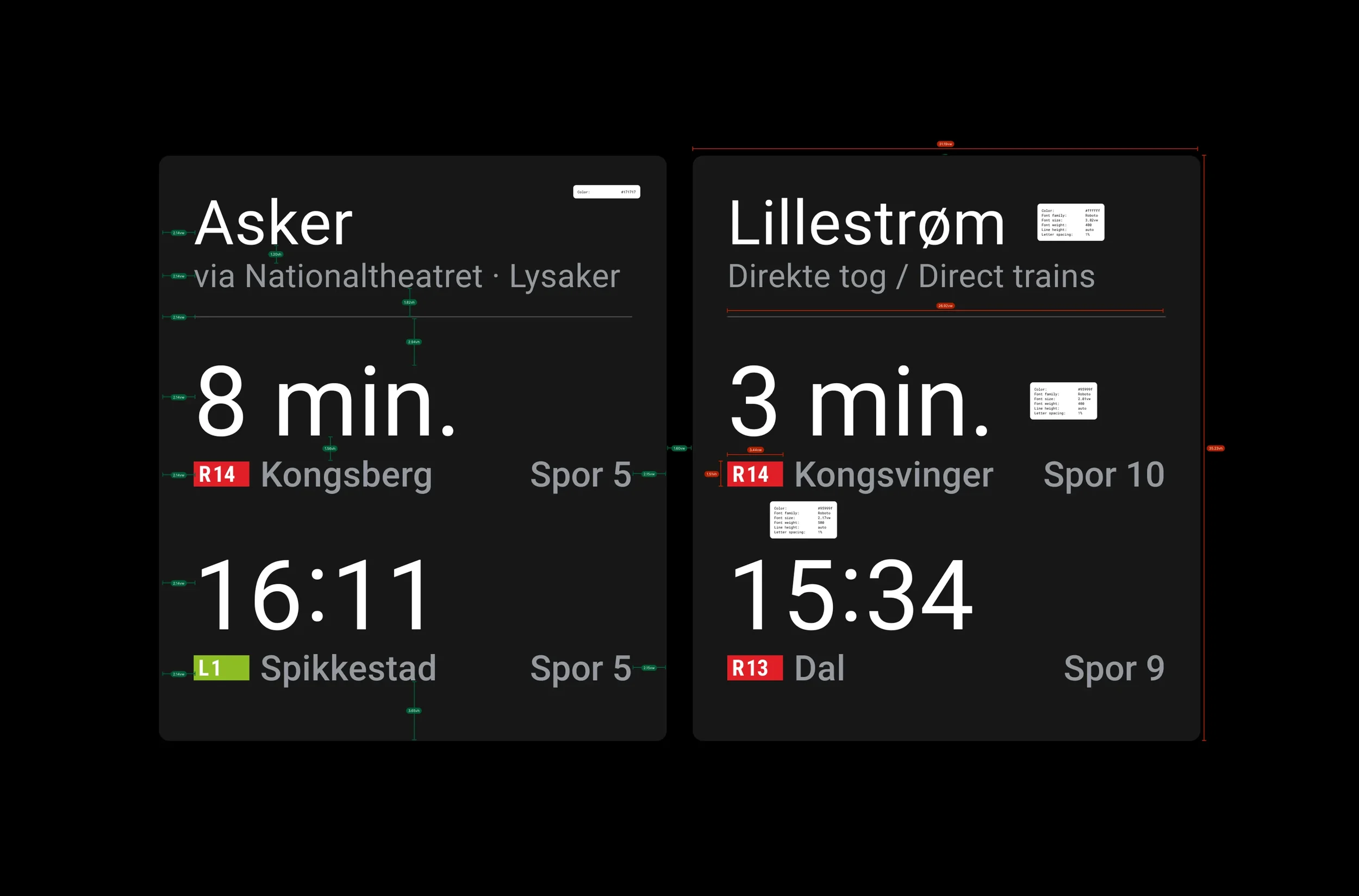 Improvements across the entire information ecosystem was made, working closely with train operators such as Vy, Flytoget, and SJ to identify pain points. Some issues were minor and easily solved—for example, correcting elements that displayed in the wrong color.
